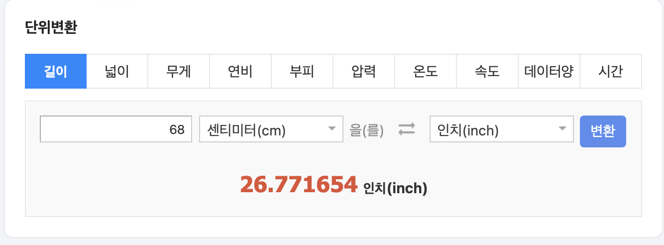 허리둘레를 인치로 변화하면 옷을 살 때 더 편리합니다.