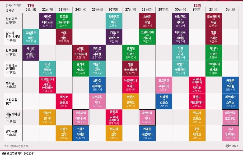 1경기 우루과이 11월 24일 한국시간 오후 10시